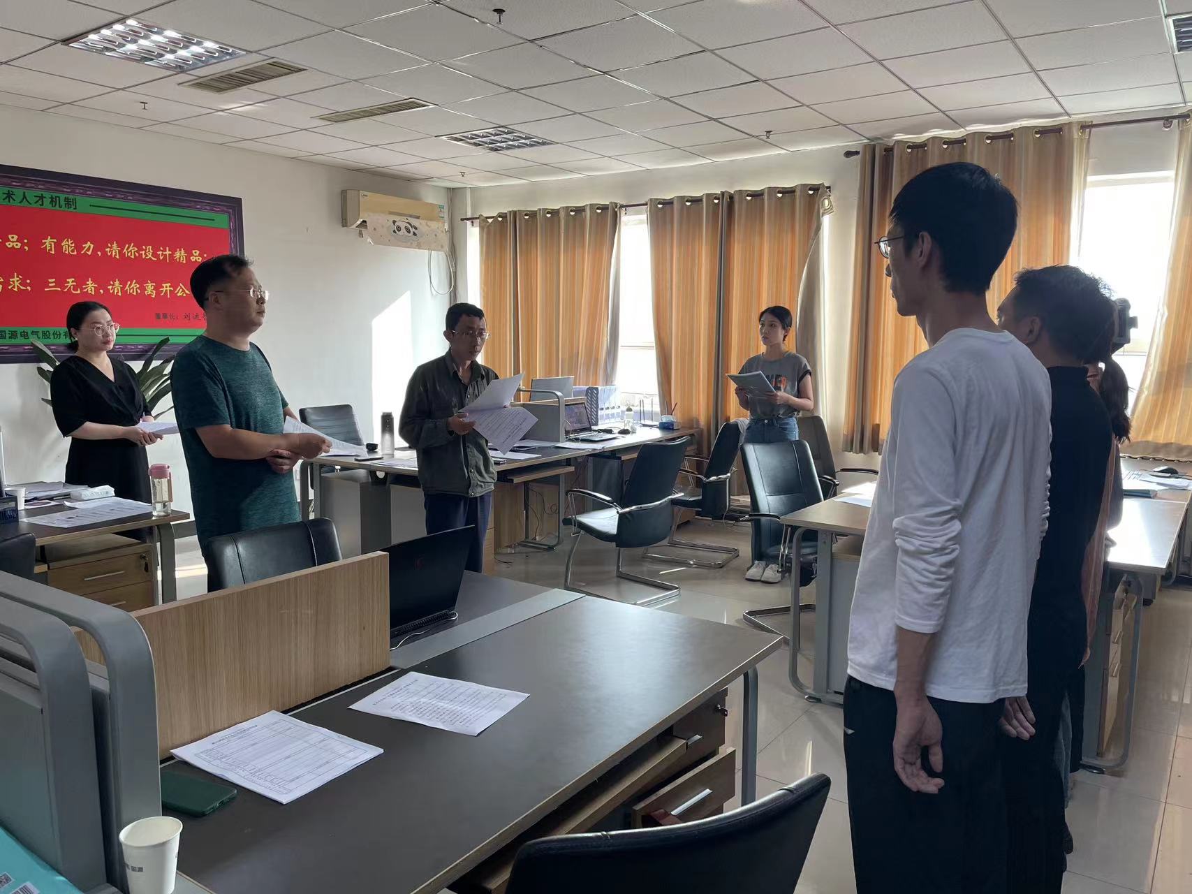 負責技術(shù)開發(fā)部全面工作的倪立顯同志對兩位“實操技術(shù)員演講”模式進行認真總結(jié)和快速復制推廣,并就今日部門實操工作進行量化和一對一的安排。