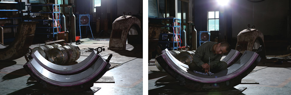 巴氏合金軸瓦、密封瓦局部補焊后刮研,達到原始設(shè)計尺寸。